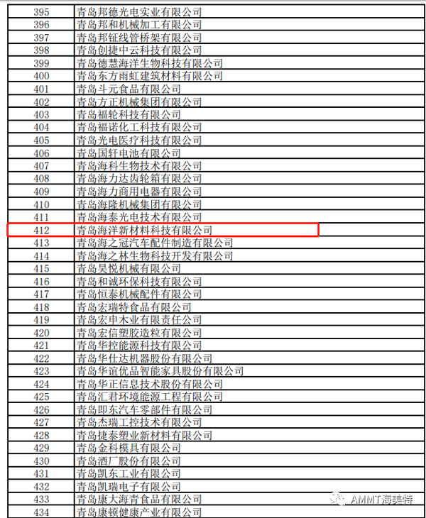 2021年8月,青島海洋新材料科技有限公司(AMMT海美特)獲批2021年度山東省“專精特新”中小企業(yè)榮譽稱號!