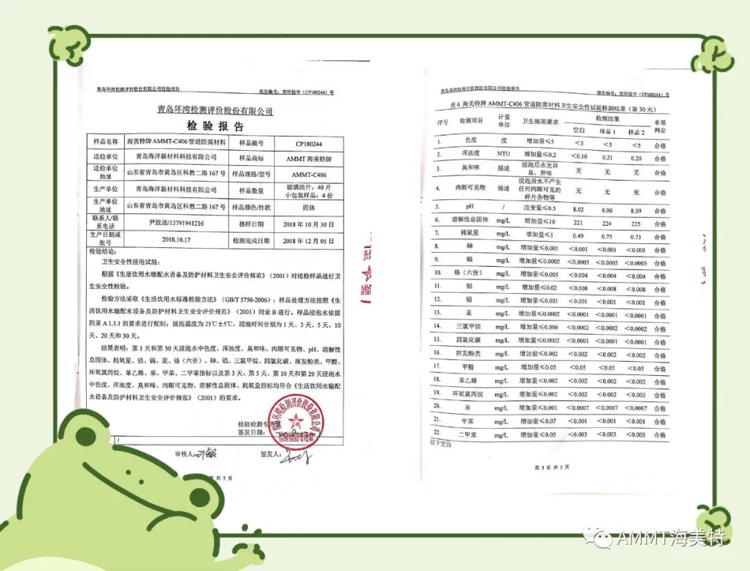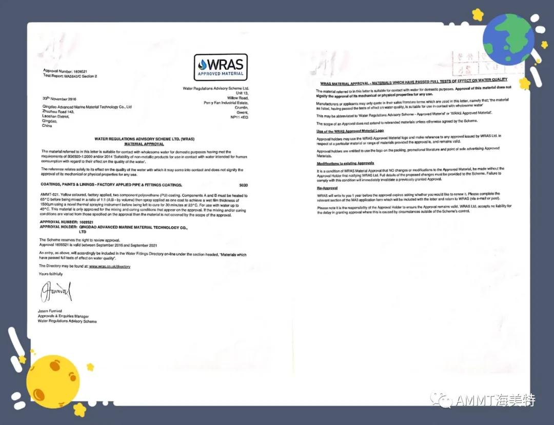 AMMT聚脲系列產(chǎn)品由半預(yù)聚體、聚醚、擴(kuò)鏈劑等原料組成,綠色環(huán)保,100%固含量,零VOC,經(jīng)過(guò)現(xiàn)場(chǎng)噴涂成型的第三代聚脲彈性體。目前主要產(chǎn)品有:AMMT-021管道防腐材料、AMMT-022聚脲防腐材料、AMMT-030高性能聚脲防水材料等。其中管道防腐材料,通過(guò)了衛(wèi)生部飲用水檢測(cè)和英國(guó)皇家水務(wù)飲用水認(rèn)證,達(dá)到涉及飲用水的標(biāo)準(zhǔn)。