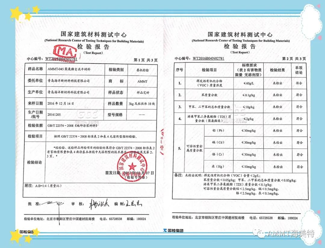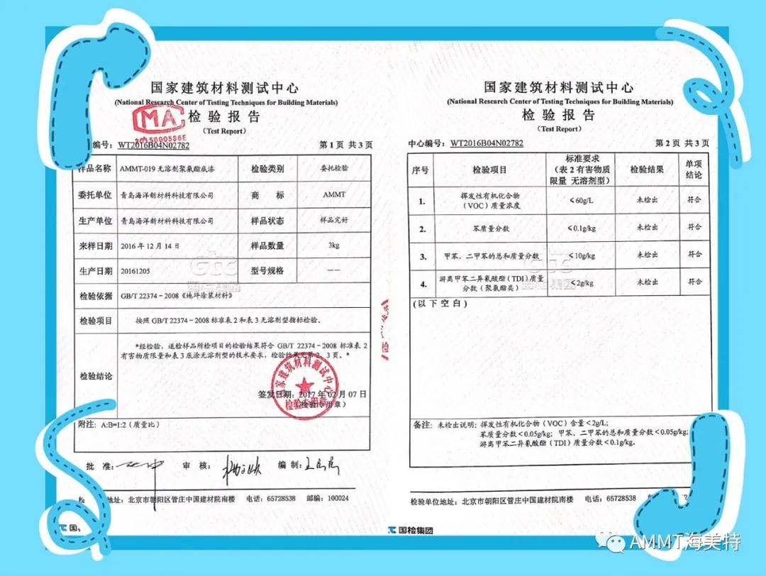AMMT無(wú)溶劑系列產(chǎn)品由異氰酸酯預(yù)聚物、改性多元醇樹脂、擴(kuò)鏈劑、填料和助劑組成的雙組份材料,綠色環(huán)保,極低VOC。目前主要產(chǎn)品有:AMMT-045無(wú)溶劑聚氨酯地坪材料(包括自流平、防靜電自流平、砂漿自流平等類型地坪材料)、AMMT-046無(wú)溶劑聚脲自流平地坪材料、AMMT-019無(wú)溶劑聚氨酯底漆、AMMT-326無(wú)溶劑環(huán)氧底漆等。AMMT無(wú)溶劑系列產(chǎn)品經(jīng)過(guò)權(quán)威機(jī)構(gòu)檢測(cè)均達(dá)到新標(biāo)準(zhǔn)環(huán)保要求。