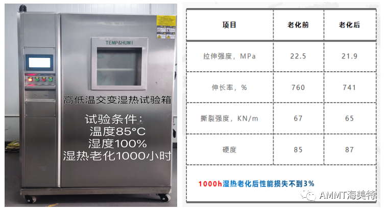 物理性能優(yōu)異,拉伸強度>25Mpa、伸長率>1000%,撕裂強度>60KN/m,