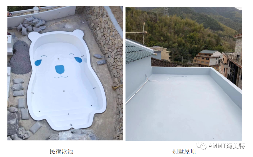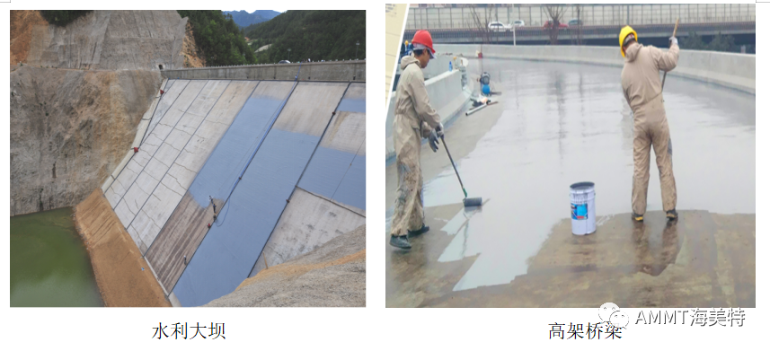 施工的簡單化、優(yōu)異的材料性能、超長的使用壽命和良好的附著力,使其可附于金屬、混凝土、磚石、石棉水泥板、木材、瀝青等各種基材,可以應用于陽臺、衛(wèi)生間、游泳池等領(lǐng)域的裝飾防水一體化工程,也可應用于大壩、橋梁、污水處理設(shè)施等混凝土表面的防護!