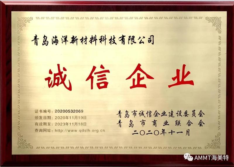 近日,青島海洋新材料科技有限公司參加了青島市誠(chéng)信企業(yè)認(rèn)證評(píng)選活動(dòng),青島市誠(chéng)信建設(shè)委員會(huì)與青島市商業(yè)聯(lián)合會(huì)對(duì)公司的信用狀況進(jìn)行了評(píng)價(jià),同意授予公司“青島市誠(chéng)信企業(yè)”的榮譽(yù)稱號(hào)。這是公司首次獲得該殊榮,對(duì)公司進(jìn)一步推動(dòng)市場(chǎng)開發(fā)和可持續(xù)發(fā)展有著重要意義。
