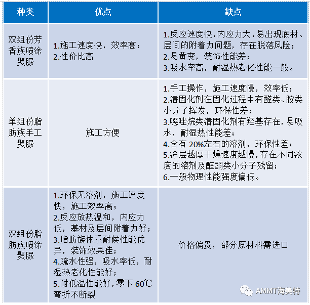 三類聚脲材料優(yōu)缺點(diǎn)對比表